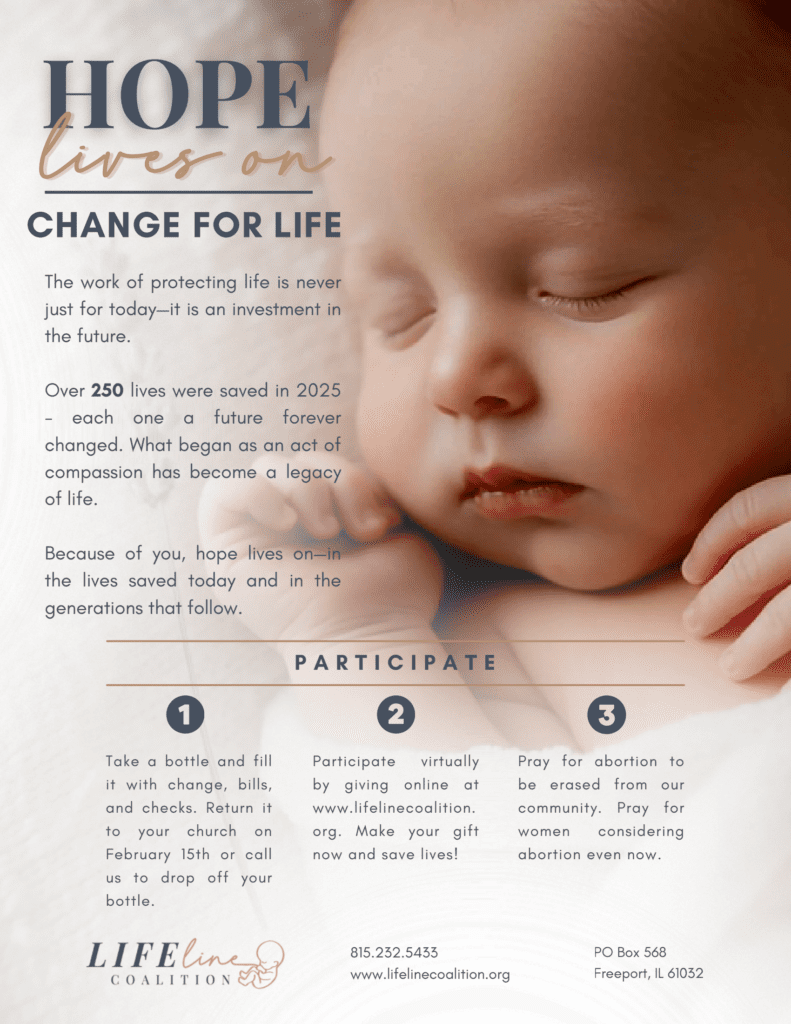 Our parishes are once again participating in the Change for Life campaign – Aiding the Lifeline Coalition to continue their important work for new mothers and the unborn.