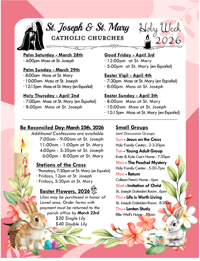 Please see the postcard below for our Mass times.